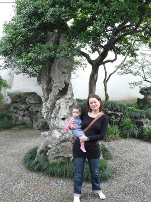 Die Altstadt selber fanden wir weniger schön. Es gibt eine schöne Parkanlage (Yuyuan-Garden), für die man Eintritt bezahlt, die wirklich sehr nett ist. Diese Anlage ist ein gutes Beispiel für chinesische Gärten mit Mini-Gebirgen, Mauern, Pavillons, Ziersteinen und kleinen Teichen. Aber ansonsten ist die Altstadt ähnlich China Town im Phantasialand und komplett überlaufen. Gut, Tomb-Sweeping war vielleicht auch nicht der richtige Zeitpunkt, dorthin zu gehen, da viele frei hatten. Aber das "Rumbummeln" dort war echt Stress. Menschenmassen, Klingeln, Hupen, Schreien etc. Nur die kleine Hannah hat dies zum Glück verschlafen :-)